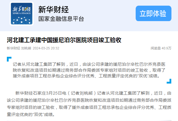 河北建工集團(tuán)承建的中國援尼泊爾醫(yī)院項(xiàng)目順利通過竣工驗(yàn)收 ? 近日,由河北建工集團(tuán)公司承建的援尼泊爾辛杜巴爾喬克縣醫(yī)院恢復(fù)和改造項(xiàng)目如期通過商務(wù)部合作局委派專家組對項(xiàng)目的竣工驗(yàn)收,取得了援外成套項(xiàng)目工程總承包企業(yè)綜合評分優(yōu)秀、工程質(zhì)量評定...